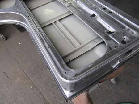 続いて左右のピラー&ドックレッグ廻りの剥離&板金を進めています。