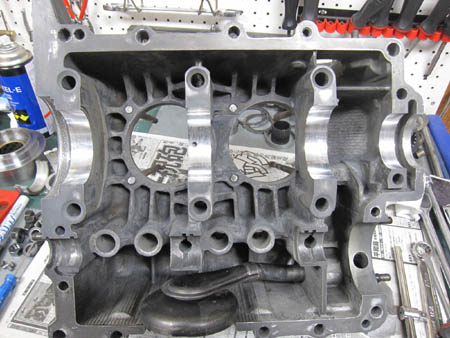 シリンダーヘッドに続きクランクケースのチェックを行いました。