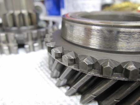 メインシャフト側の4速ギアにチョイト問題が・・・シンクロハブのギアに磨耗が出ています。