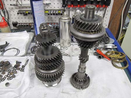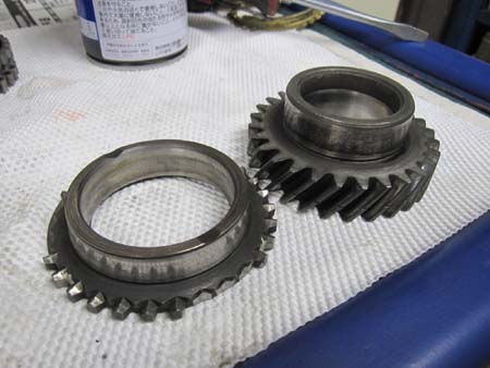 シンクロハブの加工は1stギアも行い、スライダー類のチェック後にギアを組み込みました。