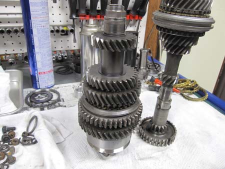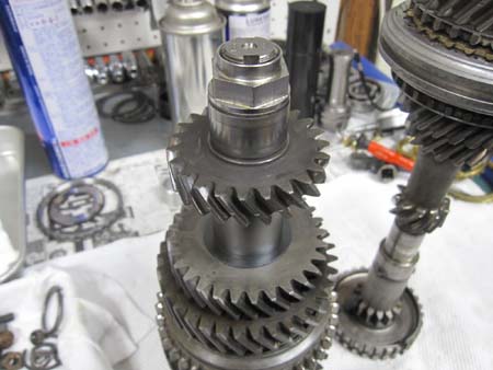 3rd〜4thギアの間はスプリングではなくコンケーブワッシャー&スリーブを使い、4thギア側の固定はクリップではなくナット式になっています。