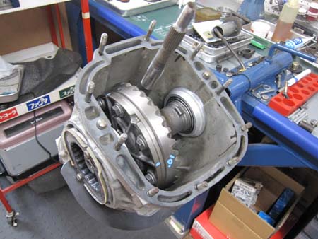 ミッションを降ろしてすぐに問題発生・・・CVフランジのメクラブタが外れていて、CVにミッションオイルがまわっていました。