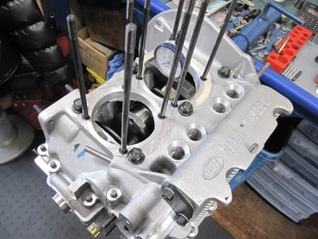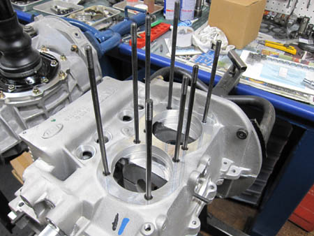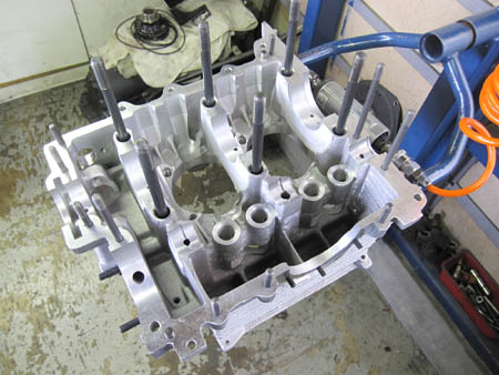 クランクケースは洗浄後にヘッドスタッドを組み付けました。