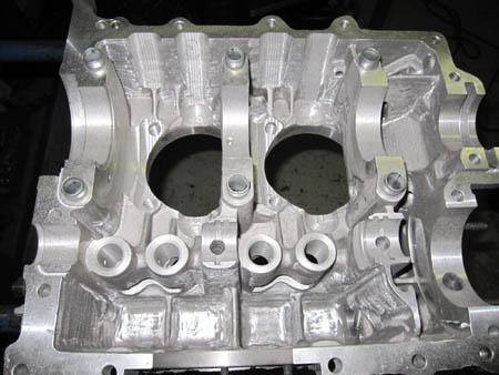 洗浄してしっかり測定しませんとハッキリ言えませんが、ラインボーリングをかければクランクケースは再使用可能かもしれません。