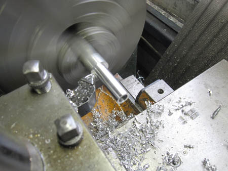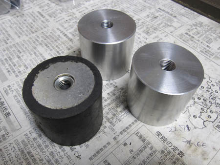 アルミの棒を旋盤でシュ〜〜♪と削り、BERGミッションサポートのラバーの代わりにします。