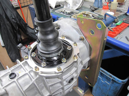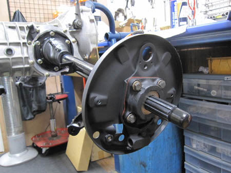 写真中央がアクスルシャフトがデフのサイドベアリングに組み込まれている状態です。