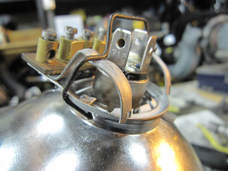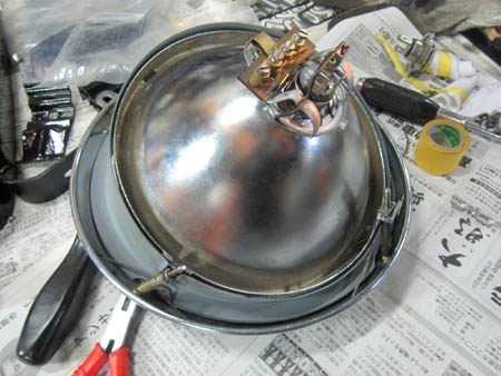 ヘッドライトのお釜とバルブを貫通させてクリップを取り付けてあります。