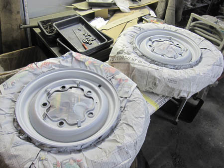 ブレーキのバッキングプレートはブラスト処理をしてペイントします。