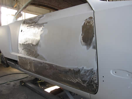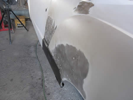 左リアクォーターパネルの張り替えを開始!