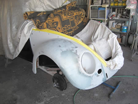 中塗まで仕上がったボディーを一度引き上げてきました。