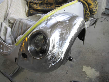 ブレットウィンカーのベースも取り外し、ハンマーリングによる面修正もほぼ完了いたしました!