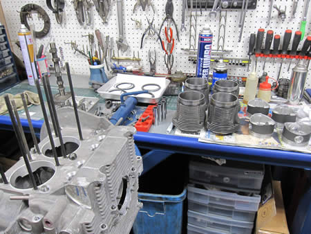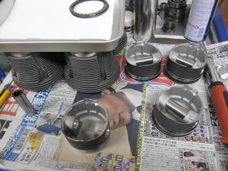 エンジンパーツの仕込みを行っています。