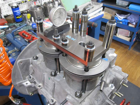 左右のヘッドを仮組して、ロッカージオメトリーの確認を行っています。