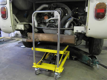 エンジンとミッションを分離せずに降ろすことができます。しかも、とっても安定しているのです!!