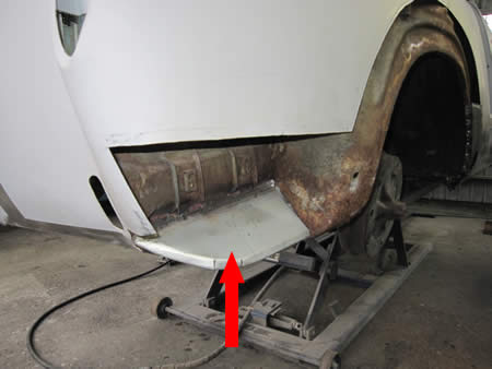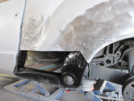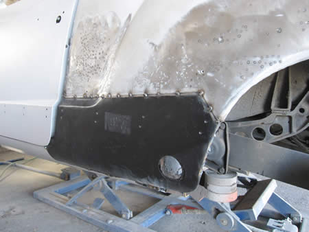 リアクォーターパネルの張り替えの後は、リアフェンダーアーチ&ロアーパネルの張り替えを進めます。