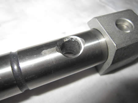 写真左のシャフトの穴を見ると、一段大きく開いているのがわかると思います。