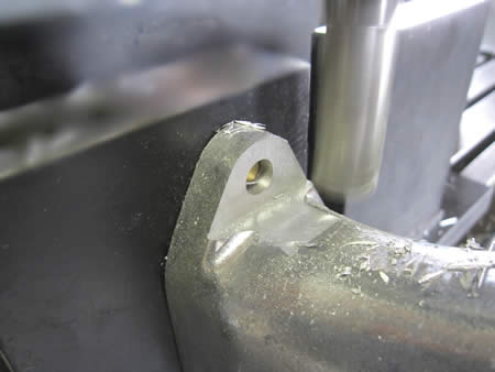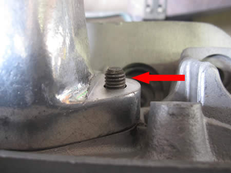 写真中央は通常上向きに組む方ですが、穴をテーパーに加工して(あまりキレイじゃありませんが、ナニせとっても堅い金属なもんで普通の刃物は使えないのです・・・)ロッカースタッドボルトと食わせます。
