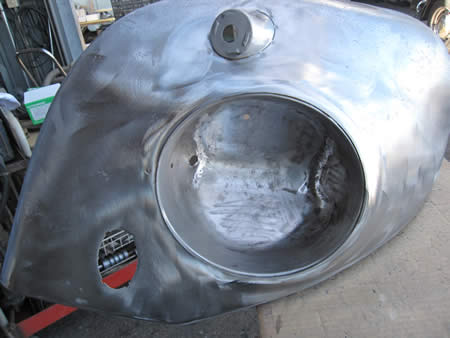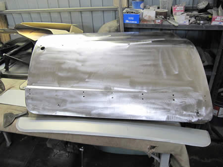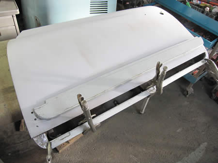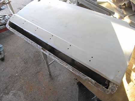 アウター&インナー共に切開後、防錆鋼板で製作したパネルを仮付け、各部の寸法を確認中です。