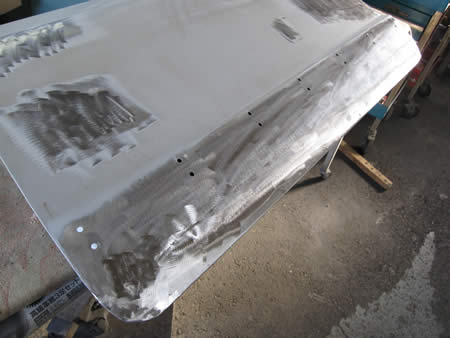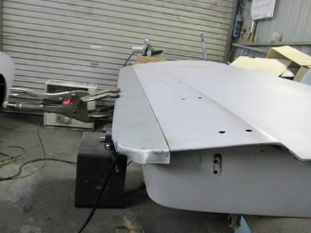 写真は防錆鋼板で製作したアウターパネルを仮付けしているところです。