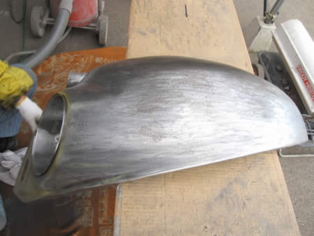 去年アメリカで購入したフロントフェンダーの下処理を開始いたしました。