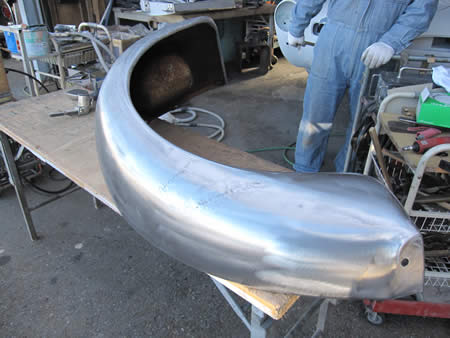 写真中央は防錆鋼板で製作したフロント側のインナーパネル!