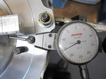 Vブロックに乗せてダイヤルゲージをあてると、針がピクとも動きません。