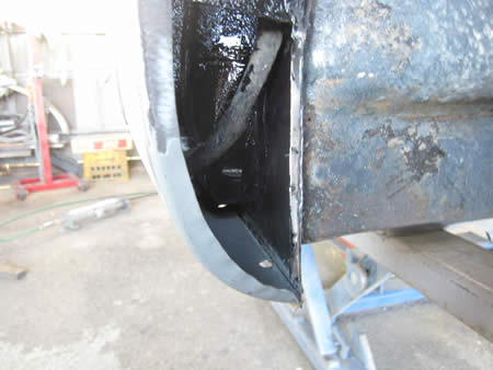 切開したサイドメンバーの内側を修正しています。