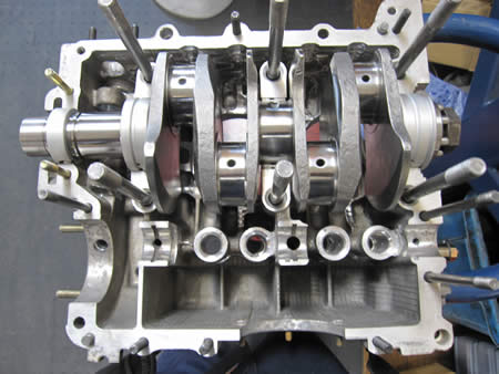 ダイナミックバランスに出してあるクランクシャフトが戻ってきたら仮組を行いましょう。