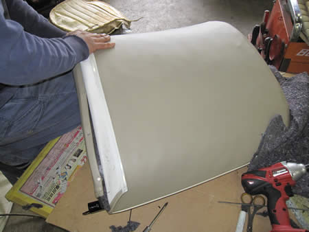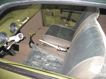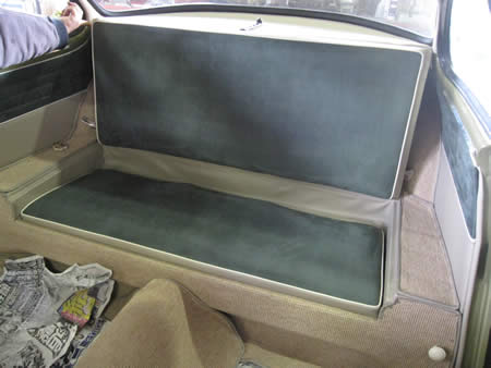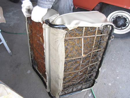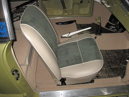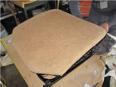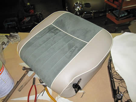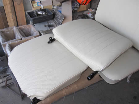 バグスポHP「FINISHED PROJECTS」内の’57OVALのシートも同じような張り方になっていますから見比べてみて下さい。