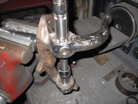 キングピンブッシュの入れ替え後にキングピンもキレイに修正して組み上げていきます。