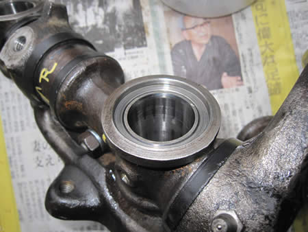 ミッションO/H時のいつもの風景?ミディエイトハウジングのブッシング加工です。
