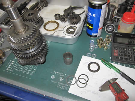 1−2速のスライダーハブは交換して1stギアのクリアランスを合わせて・・・3rdギアのクリアランスも合わせて・・・フゥ〜〜。