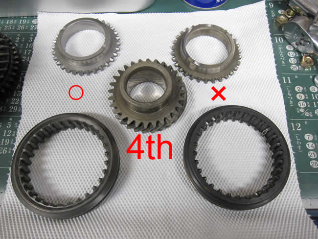 4thギアのスライダーリング&ハブのギアが大摩耗しています。