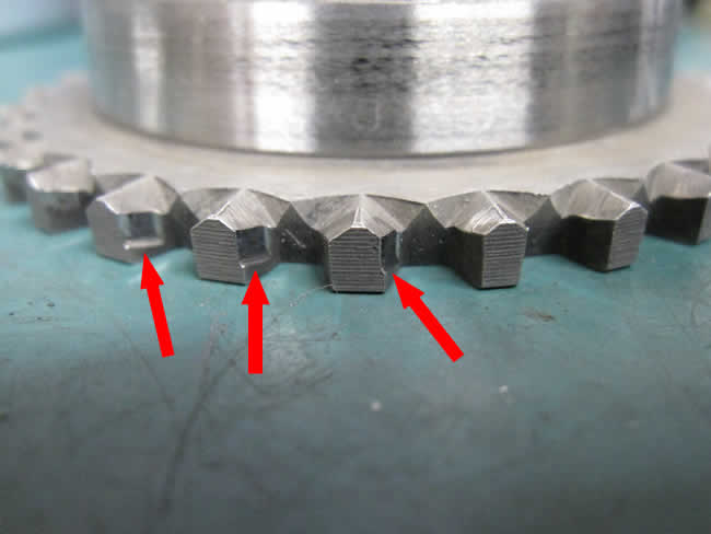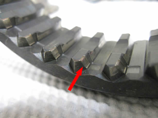 写真矢印部分が噛み合っているため、双方摩耗が進んでいるんです。