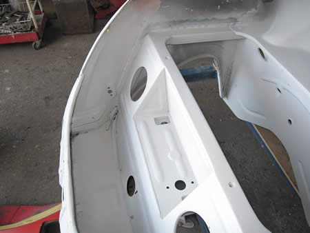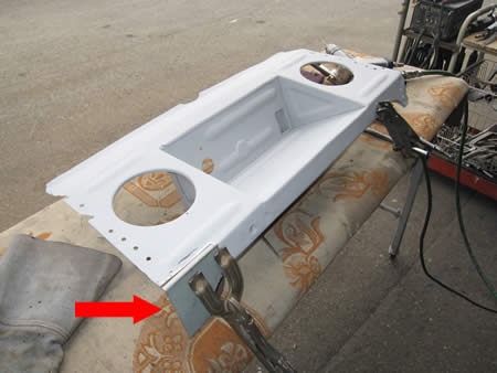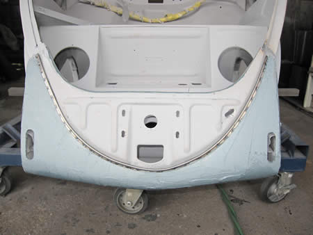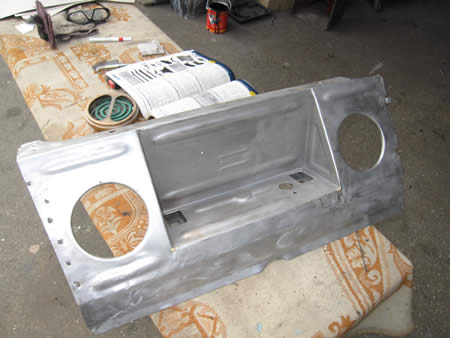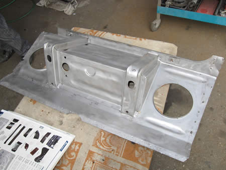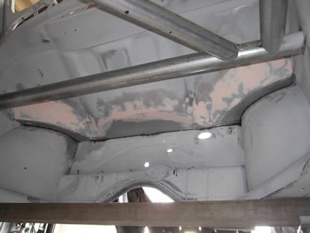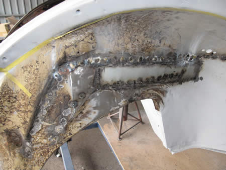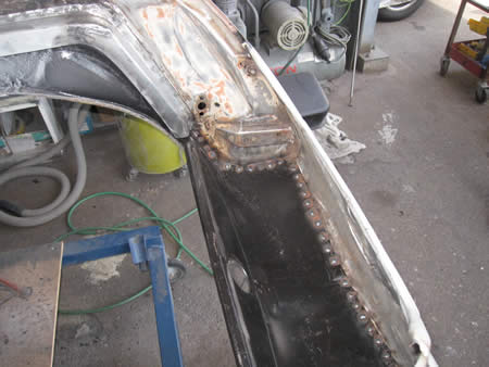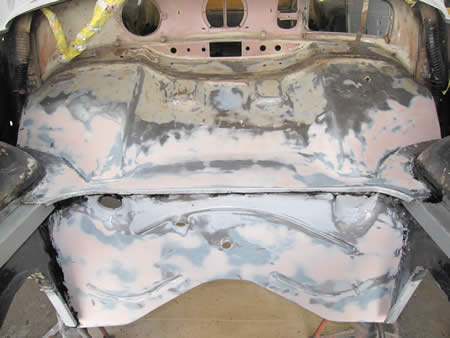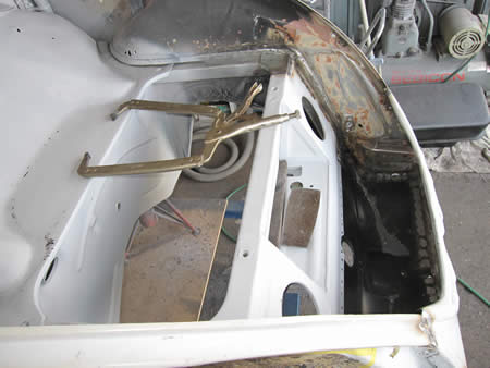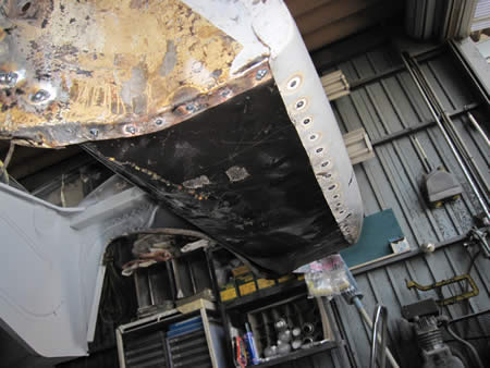両サイドのインナーパネルが整い、次はフロントエプロンのアンダーパネルを張り替えています。