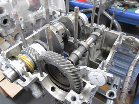 クランク&カムシャフトだけを入れてケースを組み付け、クルクル回る感触をチェックします!