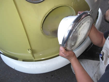 写真中央はベントグリル奥のメッシュで、POR−15を塗り込み取り付け準備完了です!