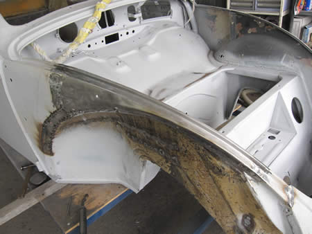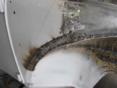 フェンダービーディングに隠れていた部分にはサビ穴がビッシリあり、大きく切開して張り替えを行いました!