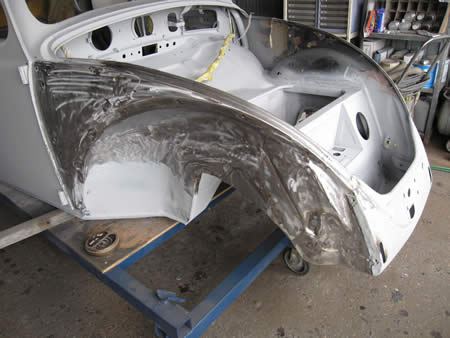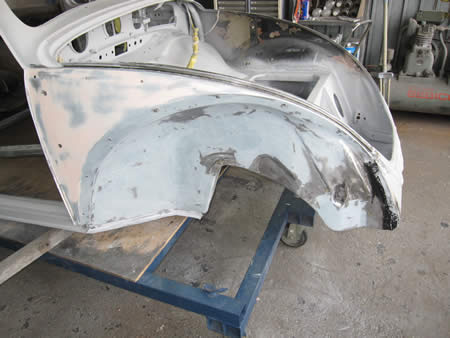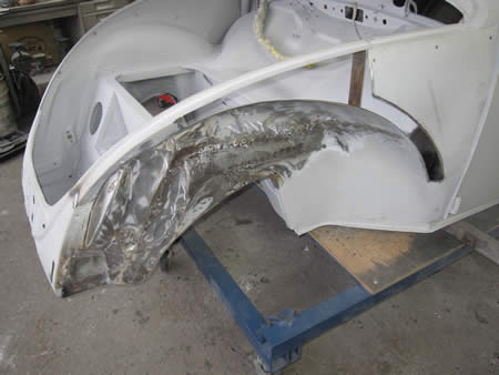 取り付け前にインナーフェンダーのパネル張替えを行っています。