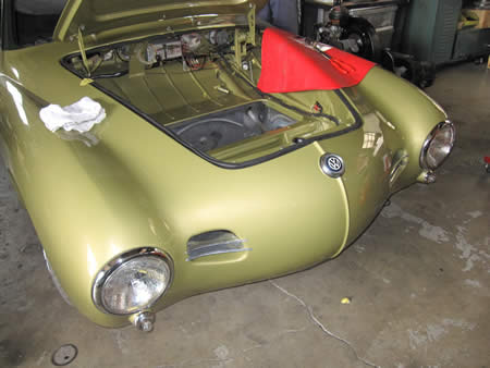 フロントフードの剥離&フロントエプロンの面修正を行っています。