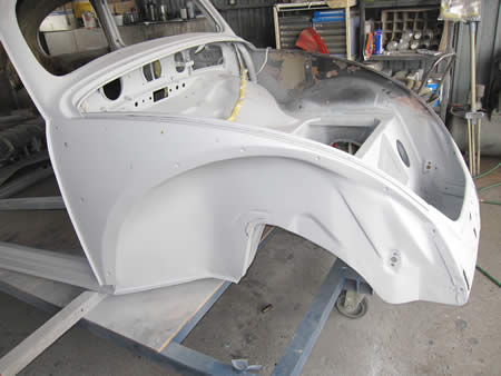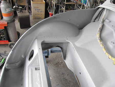 面修正が終わりサフェーサーが入ったインナーパネル!