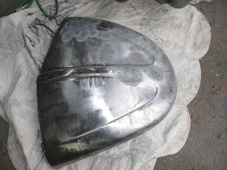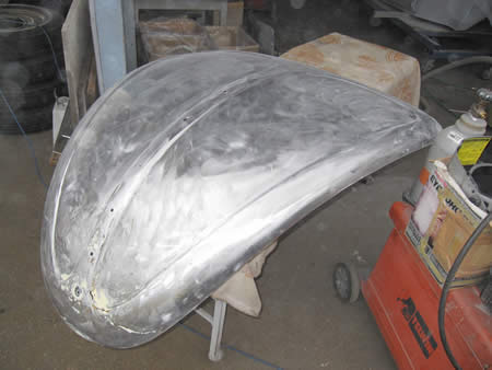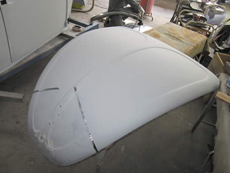 先ず剥離したフロントフードにはヒットした跡があり、一部鉄板が消滅していました。