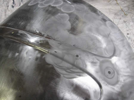 シールチャンネルをスポット溶接してから面修正を進めています!