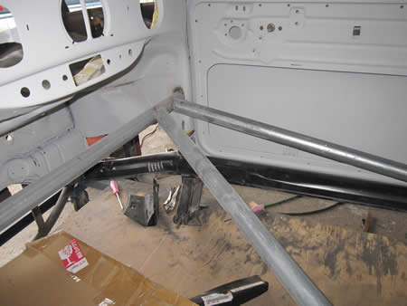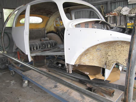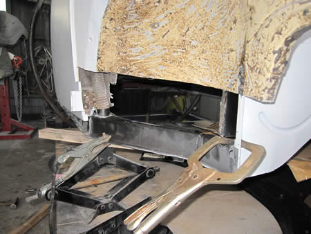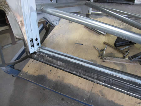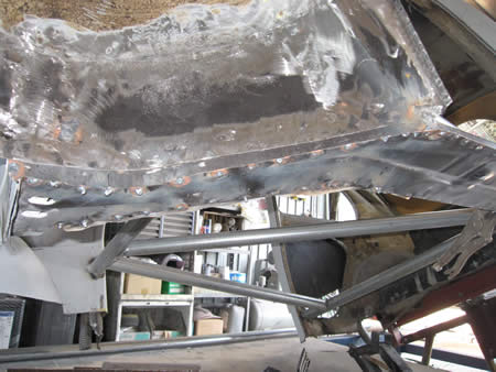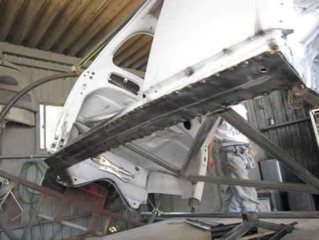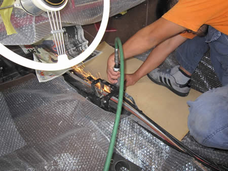 先ずはフロントファイヤーウォールをスポット溶接で止めてからリアに移ります。