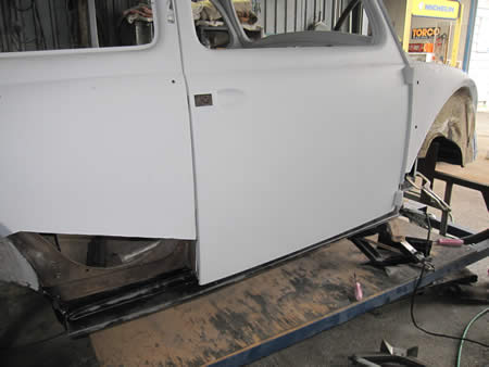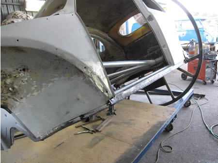 ドアを仮付けして細かいクリアランスの確認&調整をおこないながら仮溶接を行います。
