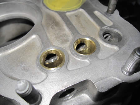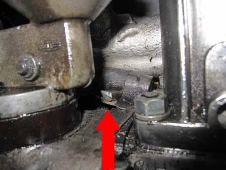 交換したミディエイトハウジングをブラスト処理後、シフトロッドの穴を点検すると・・・。