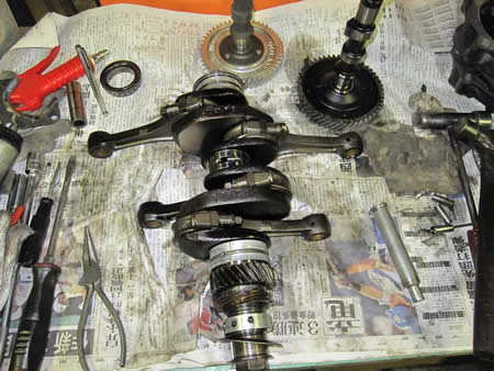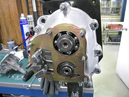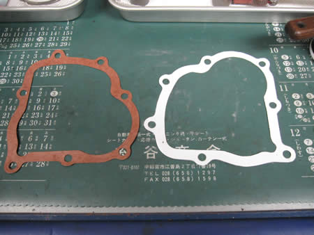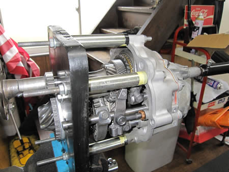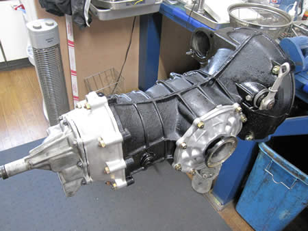 写真左はミッションケースにリバースギア&シャフトを組み込んでいるのですが、このタイプは実に整備性が悪い・・・低年式のままでよかったじゃんね・・・とブツブツ独り言・・・。