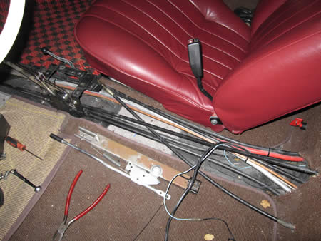 クラッチケーブルのガイドチューブの取り付け、ペダルの交換、シフトレバーマウントの取り付けなど、室内の作業がテンコ盛り・・・。