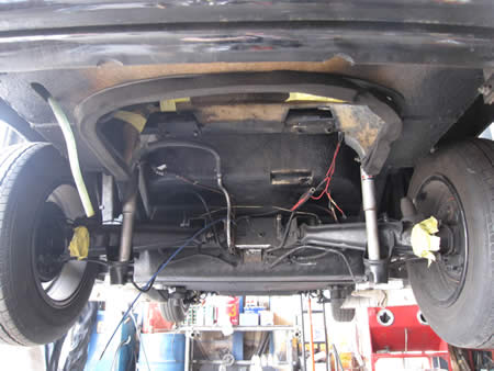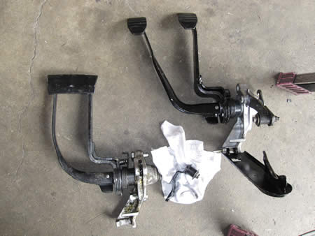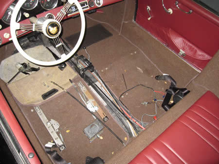 車体の方もセンタートンネル部分を分解して、マニュアル用のシフトレバー、ロッド、ABCペダルの取り付け準備を進めています。