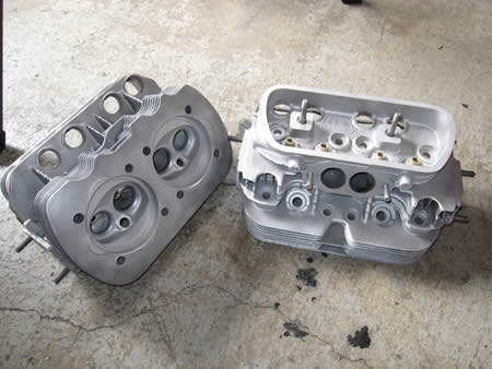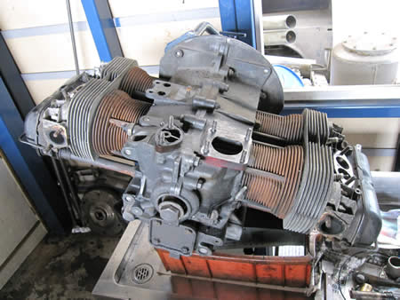 ブラスト処理まで完了したシリンダーヘッドに、高圧洗浄機で油汚れを落としたクランクケース。